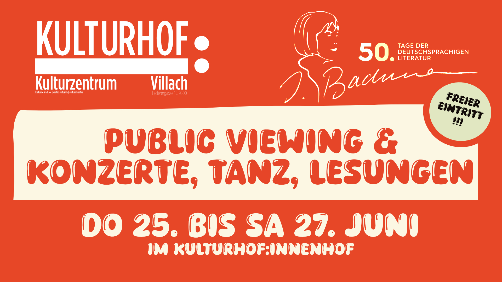 Der Kulturhof:villach ist das Kulturzentrum der Stadt, das seit 2011 alternativer Kunst und Kultur einen Raum in Villach bietet. Der Kulturhof: versteht sich dabei als eine lebendige Basis für Kulturschaffende mit der Stadt in Beziehung zu treten. Weiterlesen