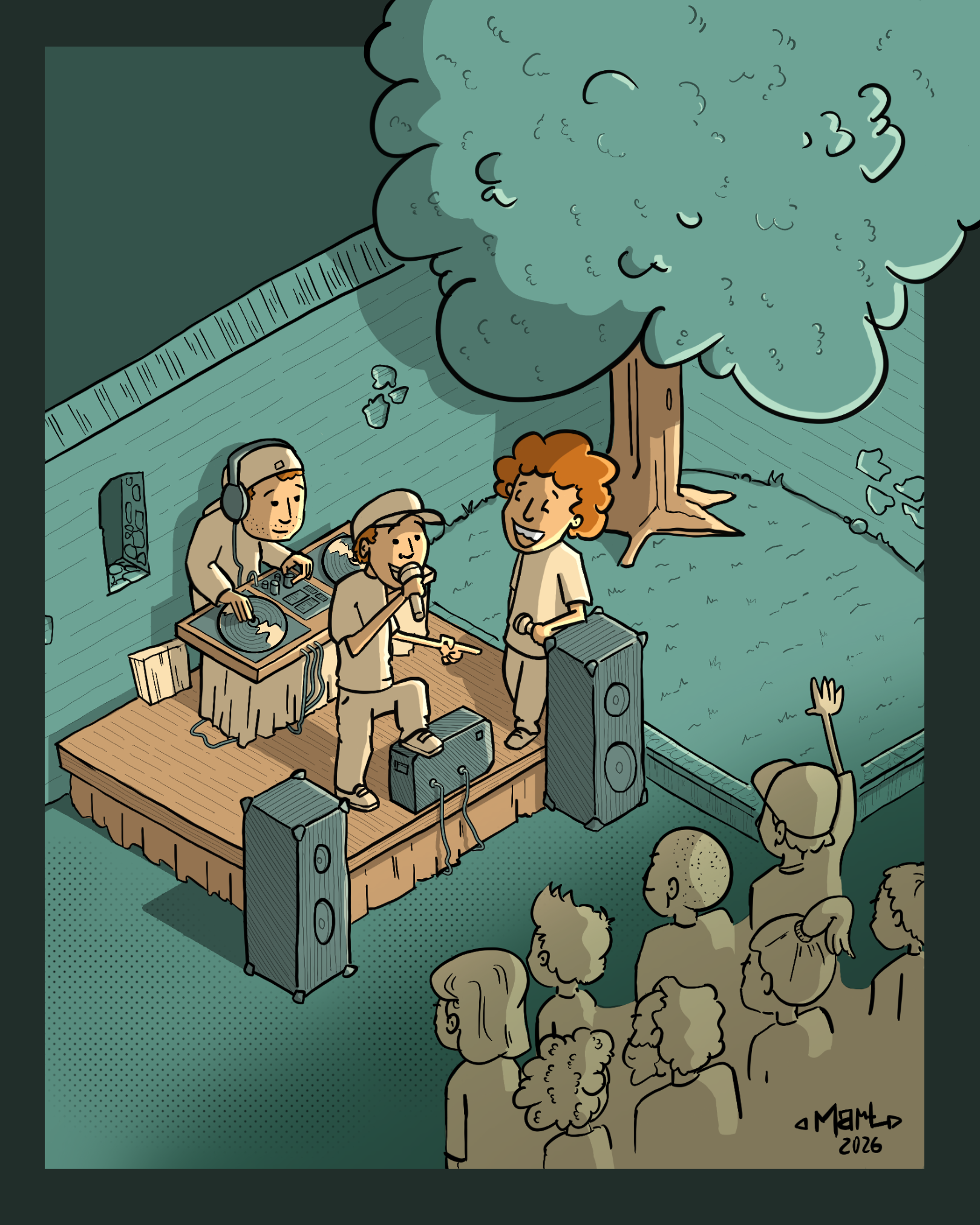 Für die Bachmanntage hebt das Duo von doppelt sichtbar den monatlichen Rap im Keller ans Tageslicht und veranstaltet kurzerhand Rap im Hof - dies nach gewohnter Freestyle-Cypher-Manier.